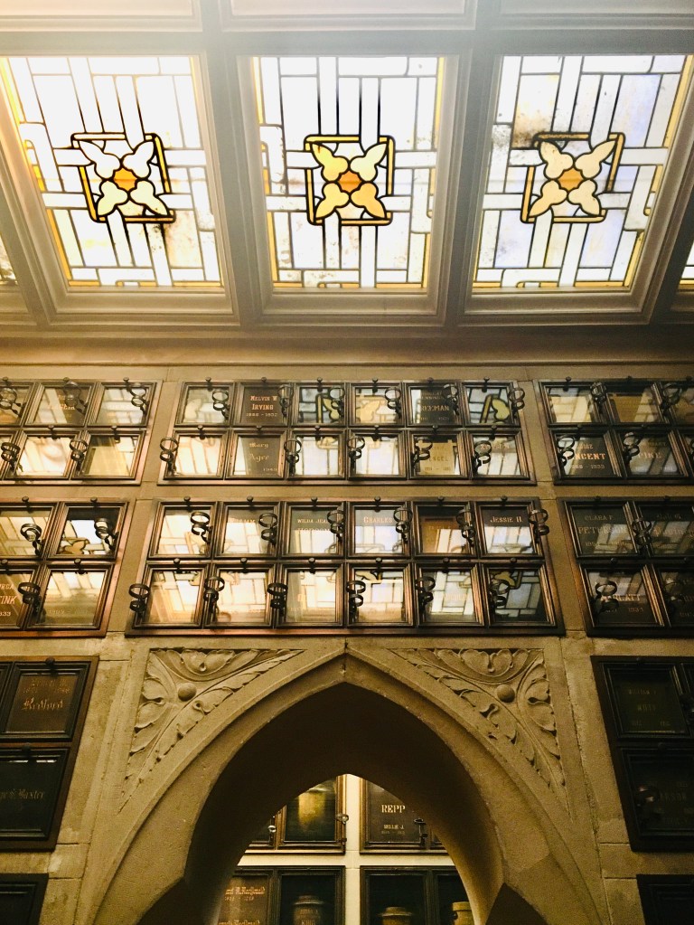 A mausoleum (technically a columbarium) may not be on everyone’s top-ten list for places to spend a sunny afternoon in California, but if you’re the kind of person who makes a beeline for unique or historical cemeteries when you visit a new city, the Chapel of the Chimes will be up your alley. A maze of chambers connected by intimate courtyards and terraced gardens houses the ashes of thousands of former Oakland residents, many of them interred in book-shaped urns displayed in glass-fronted niches that go up to tall ceilings. Skylights, softly dripping fountains, and mosaics and sculptures clad in shades of turquoise contribute to the parklike setting inside a semi-enclosed, quasi-Moorish